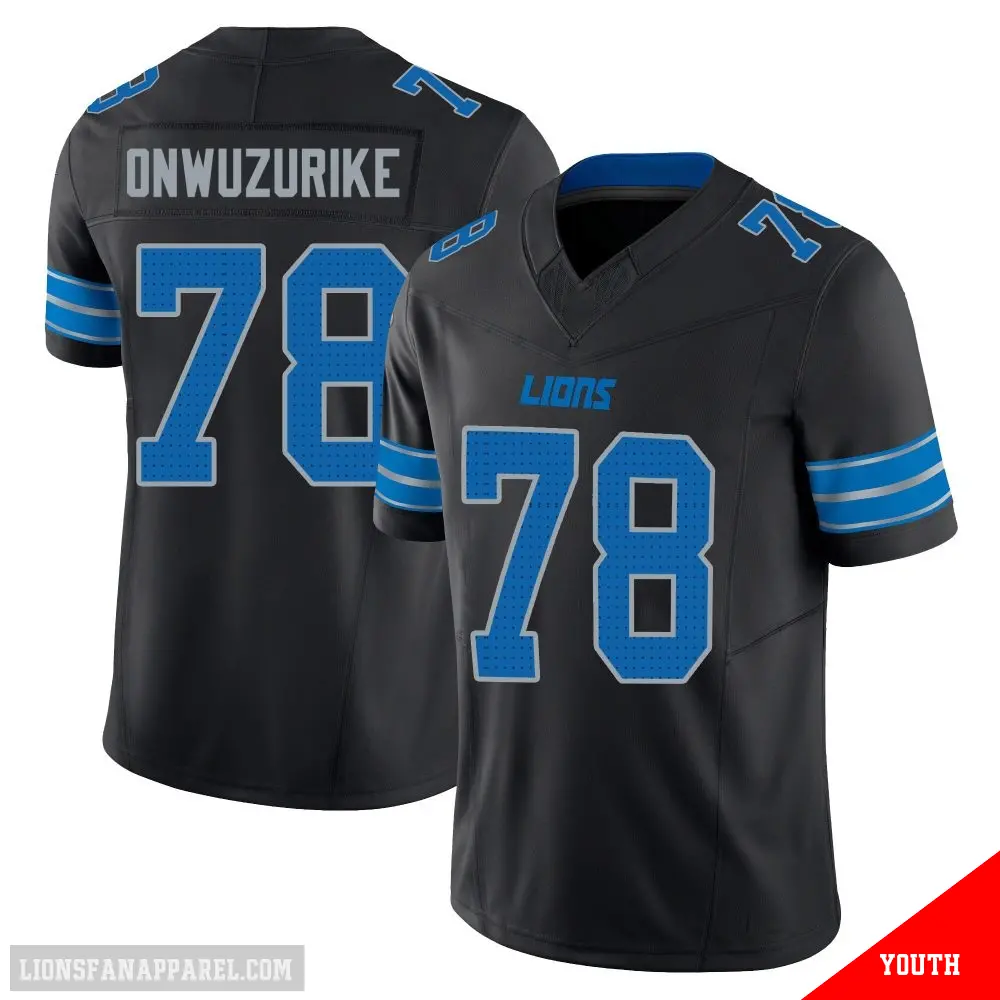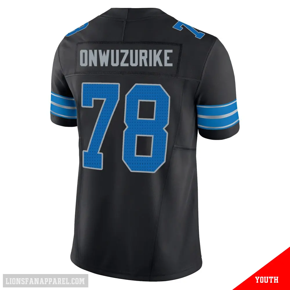 Display your Lions spirit year-round with this #78 Youth Levi Onwuzurike Black Limited Detroit Lions Alternate Vapor F.U.S.E. 2nd Jersey. Whether you're in the crowd or lounging at home, it's the ideal way to showcase your love for Lions.